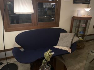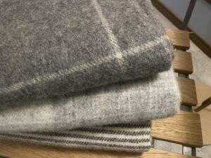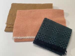 手織りのマフラーやテーブルセンター、デンマークのブランケット、家具型ラジエータ式暖房器具など、普段は扱っていない分野の製品を展示販売しています。