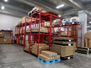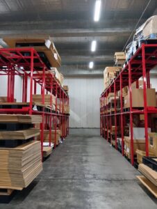 保管中の商品は、配送・設置を見据えた状態で管理され、出荷時にはそのまま現場に向かえる体制を整えています。
